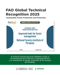 El Instituto Forestal Nacional (INFONA) fue distinguido por la Organización de las Naciones Unidas para la Alimentación y la Agricultura (FAO) con el Global Technical Recognition 2025, un galardón que destaca el liderazgo de Paraguay en la producción y protección sostenible de los bosques.